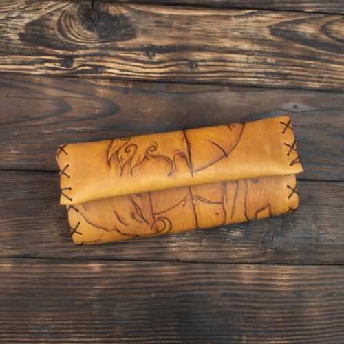 Αυτή η καπνοθήκη είναι ένα κομμάτι τέχνης, φτιαγμένο από χοντρό φυσικό δέρμα και εμπνευσμένο από το διάσημο cartoon One Piece. Κάθε κομμάτι είναι μοναδικό και δουλεμένο με μεράκι και φροντίδα καθώς η εικονογράφηση γίνεται στο χέρι με τη μέθοδο της πυρογραφίας.