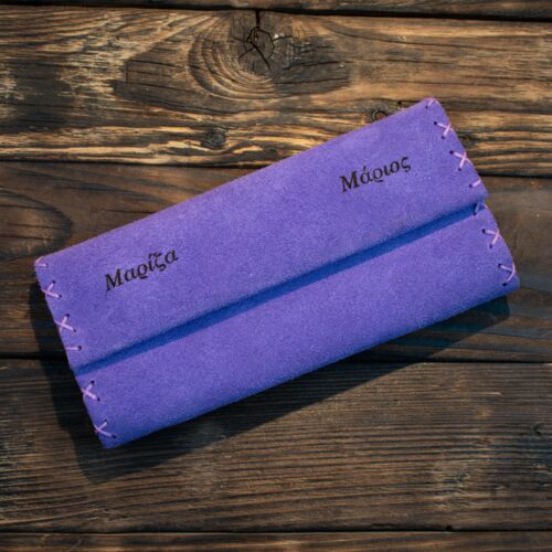 Κάθε κομμάτι είναι δουλεμένο με μεράκι και φροντίδα, με περιμετρική ραφή περασμένη στο χέρι. Διαθέτει πρακτικό κλείσιμο με δύο πολύ σταθερά μαγνητικά κλιπ, θήκη με φερμουάρ και ειδική θήκη για τα χαρτάκια.