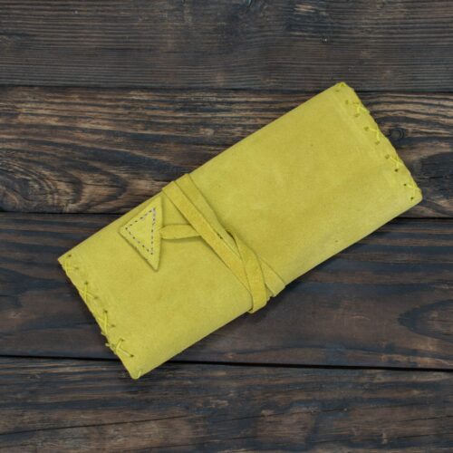 Καπνοθήκη Χειροποίητη Δερμάτινη Σουέτ με Κορδόνι Κίτρινη