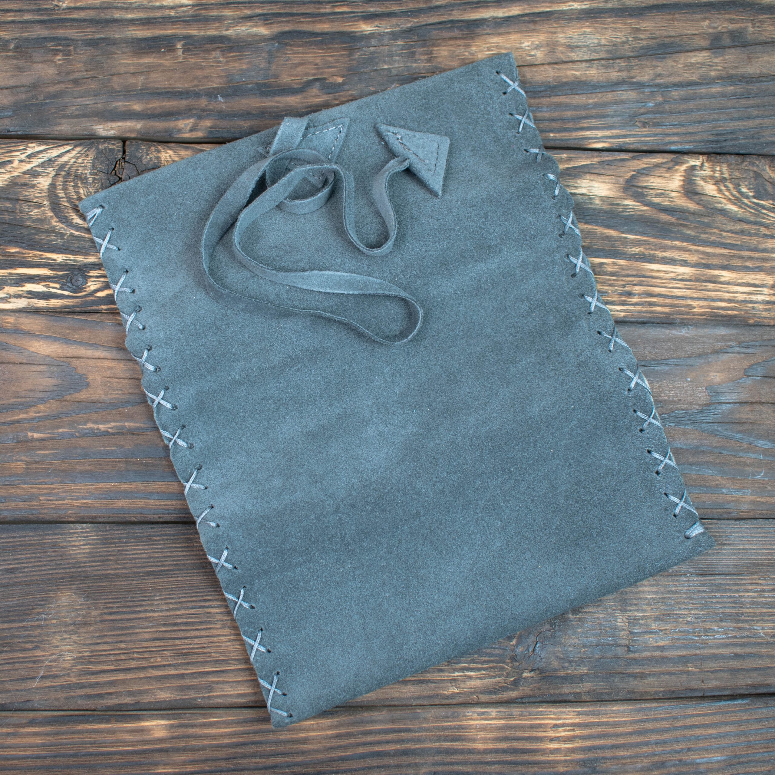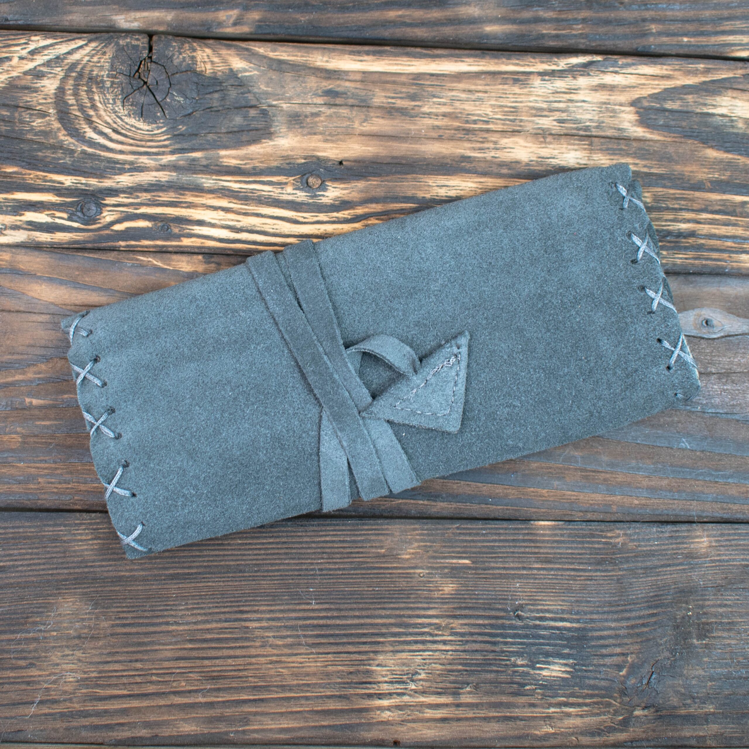 Καπνοθήκη Χειροποίητη Δερμάτινη Σουέτ με Κορδόνι Σκούρο Γκρι
