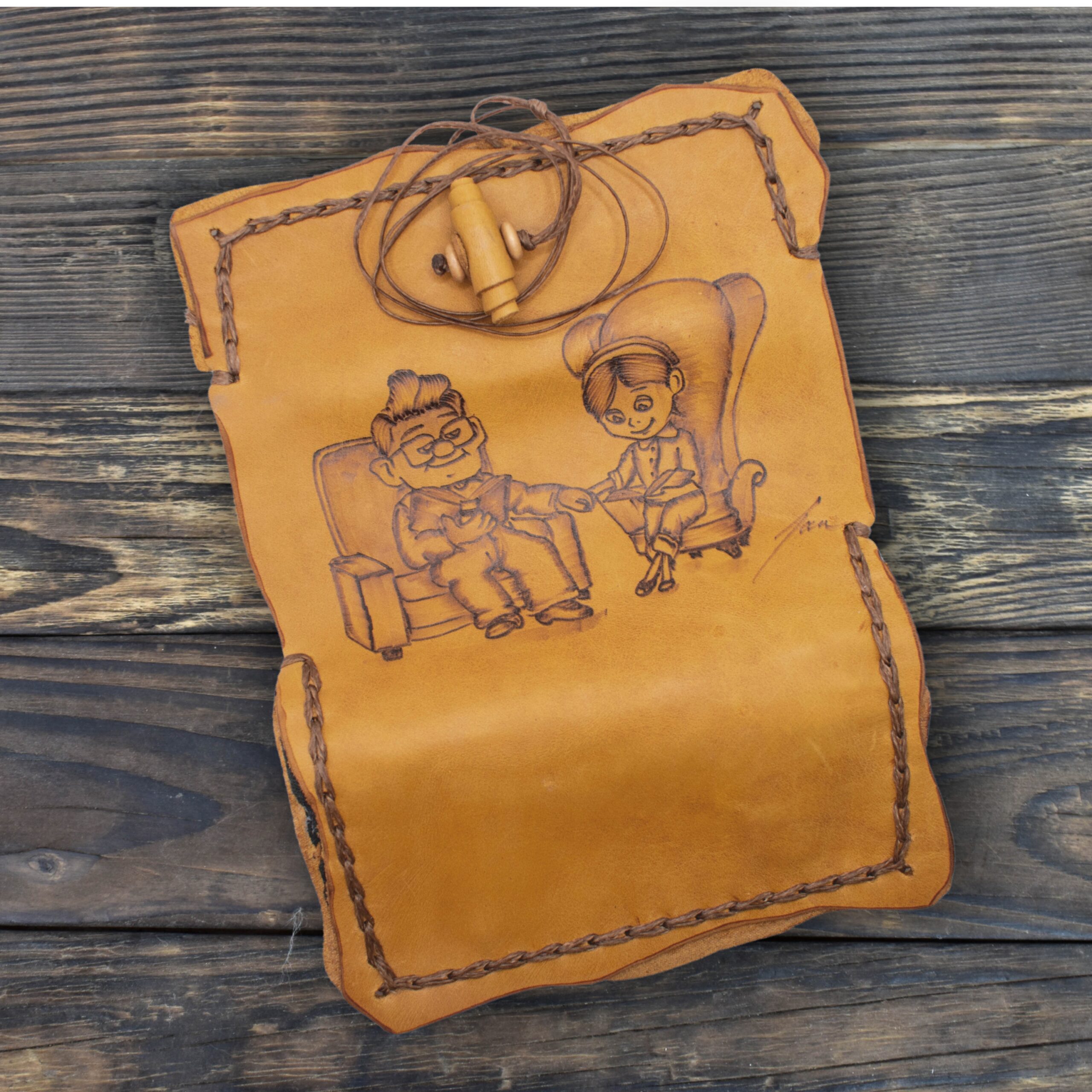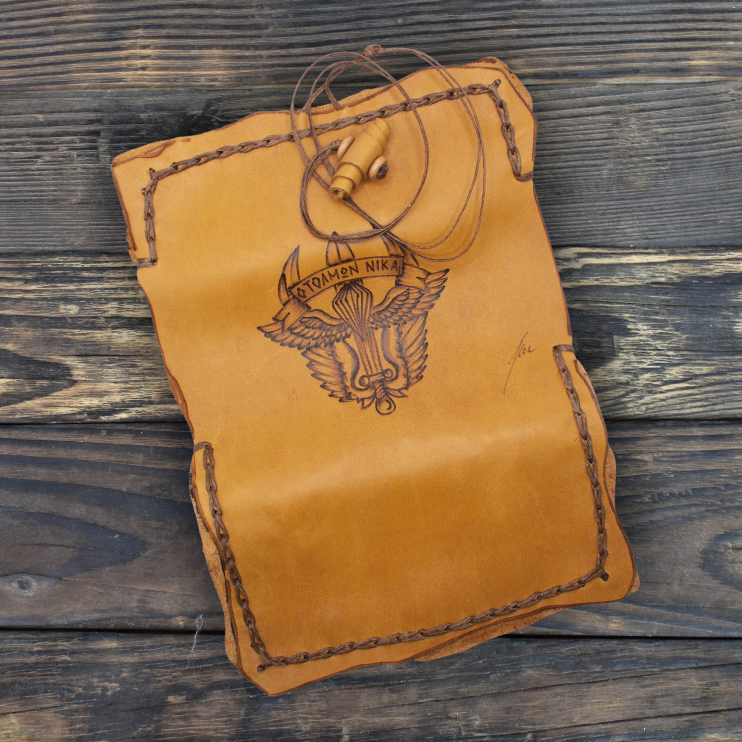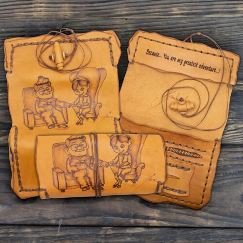 Θα είναι ένα κομμάτι τέχνης, φτιαγμένη από φυσικό δέρμα και εμπνευσμένη από το δικό σου γούστο. Κάθε κομμάτι είναι μοναδικό και δουλεμένο με μεράκι και φροντίδα καθώς η εικονογράφηση γίνεται στο χέρι με τη μέθοδο της πυρογραφίας.